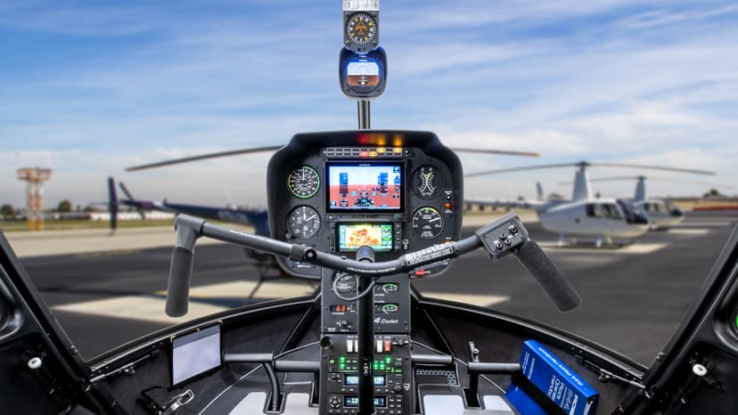 A larger, more substantial trainer empowers student pilots' learning and confidence. The Cadet has the same airframe, rotor system and Lycoming O-540 engine as the proven R44 Raven I. The differences are the Cadet’s aft compartment is reconfigured to make extra space for cargo, the maximum gross weight is reduced to 2200 lb, and the engine power is derated to 210 hp take-off and 185 hp continuous. The lower weight and derated power provide increased performance margins at high altitudes and extend the time between overhauls to 2400 hours. Cadets feature streamlined instrument panels and a crashworthy fuel system.