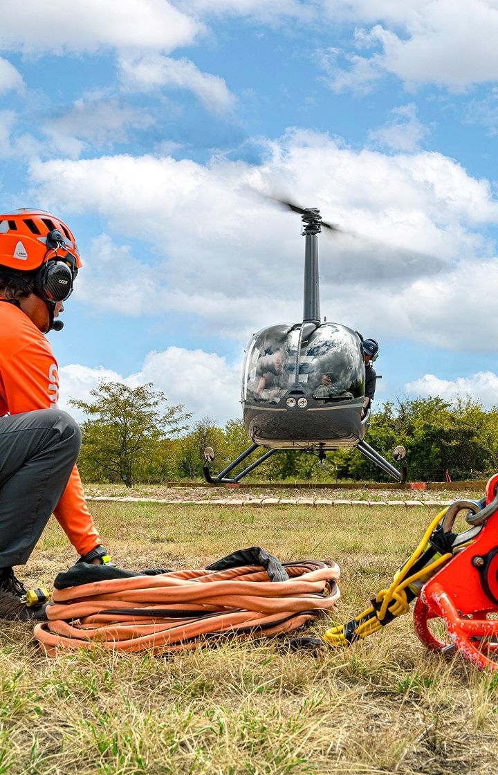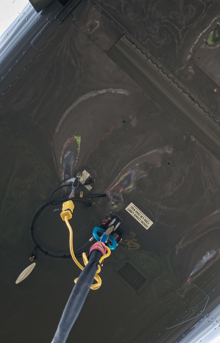 Essential monitoring is provided by a load weighing system, and crew safety during open-door operations is ensured with interior anchor points at forward door posts for attaching a safety tether or harness.
