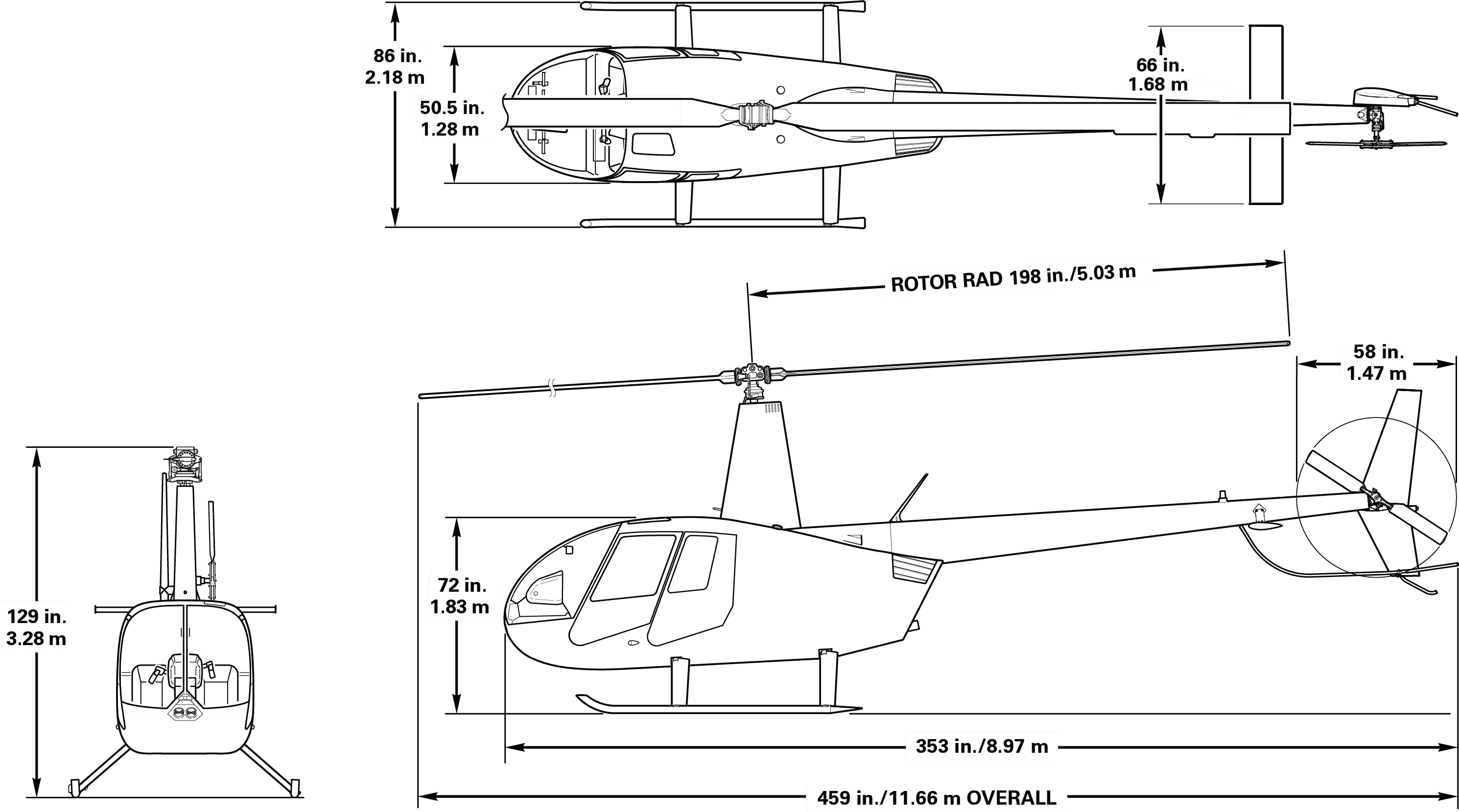 A larger, more substantial trainer empowers student pilots' learning and confidence. The Cadet has the same airframe, rotor system and Lycoming O-540 engine as the proven R44 Raven I. The differences are the Cadet’s aft compartment is reconfigured to make extra space for cargo, the maximum gross weight is reduced to 2200 lb, and the engine power is derated to 210 hp take-off and 185 hp continuous. The lower weight and derated power provide increased performance margins at high altitudes and extend the time between overhauls to 2400 hours. Cadets feature streamlined instrument panels and a crashworthy fuel system.