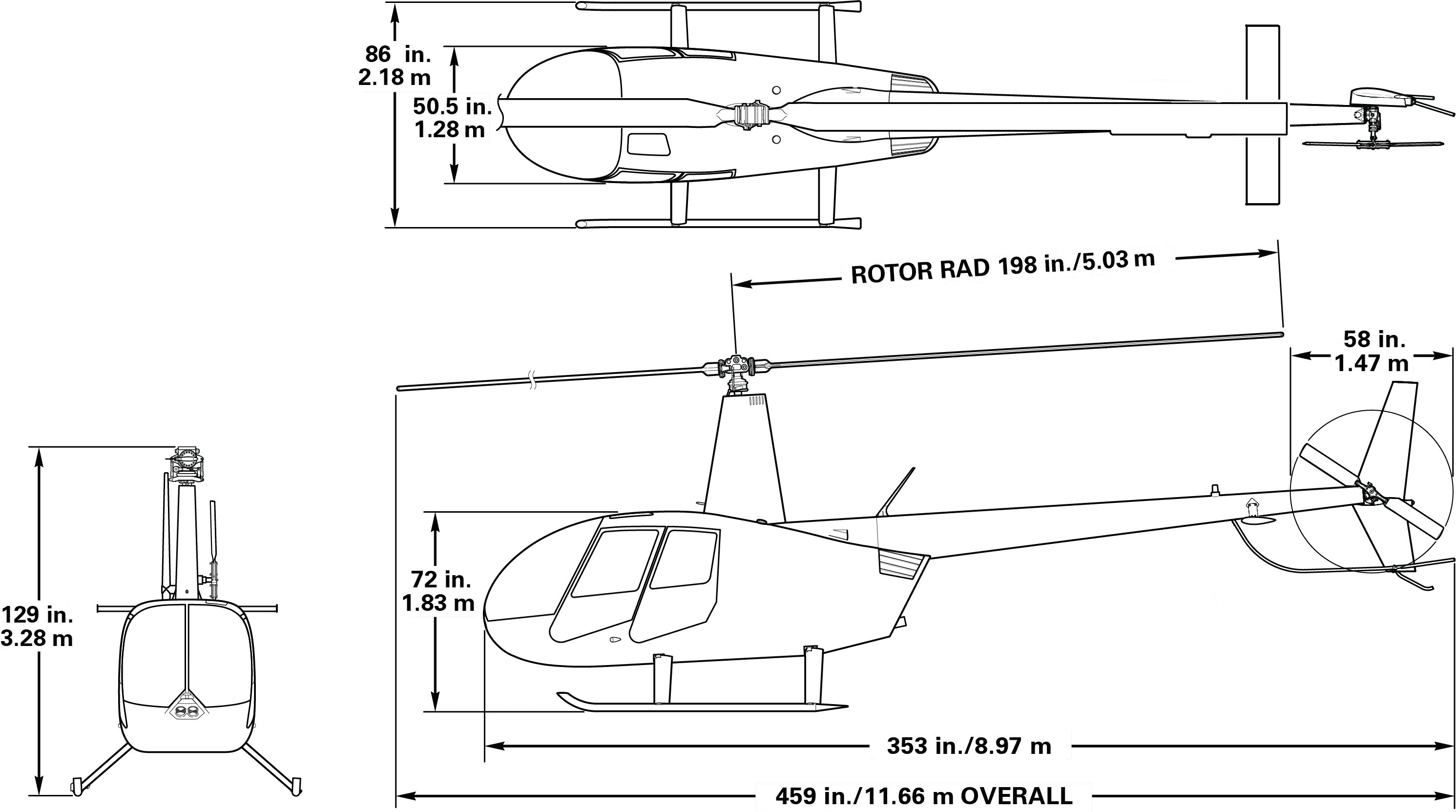 Standard features: The R44 Raven II and Clipper II have a two-bladed rotor system, streamlined instrument panels and a crashworthy fuel system. An aluminum monocoque and powder-coated steel tube structure provide a lightweight, yet robust airframe while the aerodynamic fuselage optimizes airspeed and fuel economy. Hydraulically boosted controls eliminate cyclic and collective feedback forces and provide responsive handling. A low tail-rotor tip speed and large cambered tail reduce flyover noise. Raven II and Clipper II helicopters are powered by Lycoming’s IO-540 fuel injected engine. The IO-540 delivers improved altitude performance, an increased payload of 2500 lbs, and eliminates the need for carburetor heat.