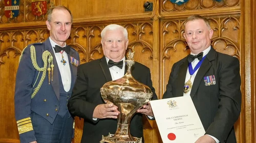 Photo Caption: RAF Deputy Commander Operation Air Marshall Gerry Mayhew (left), Tim Tucker (center) and Master of the Company, Squadron Leader (retired) Nick Goodwyn (right).