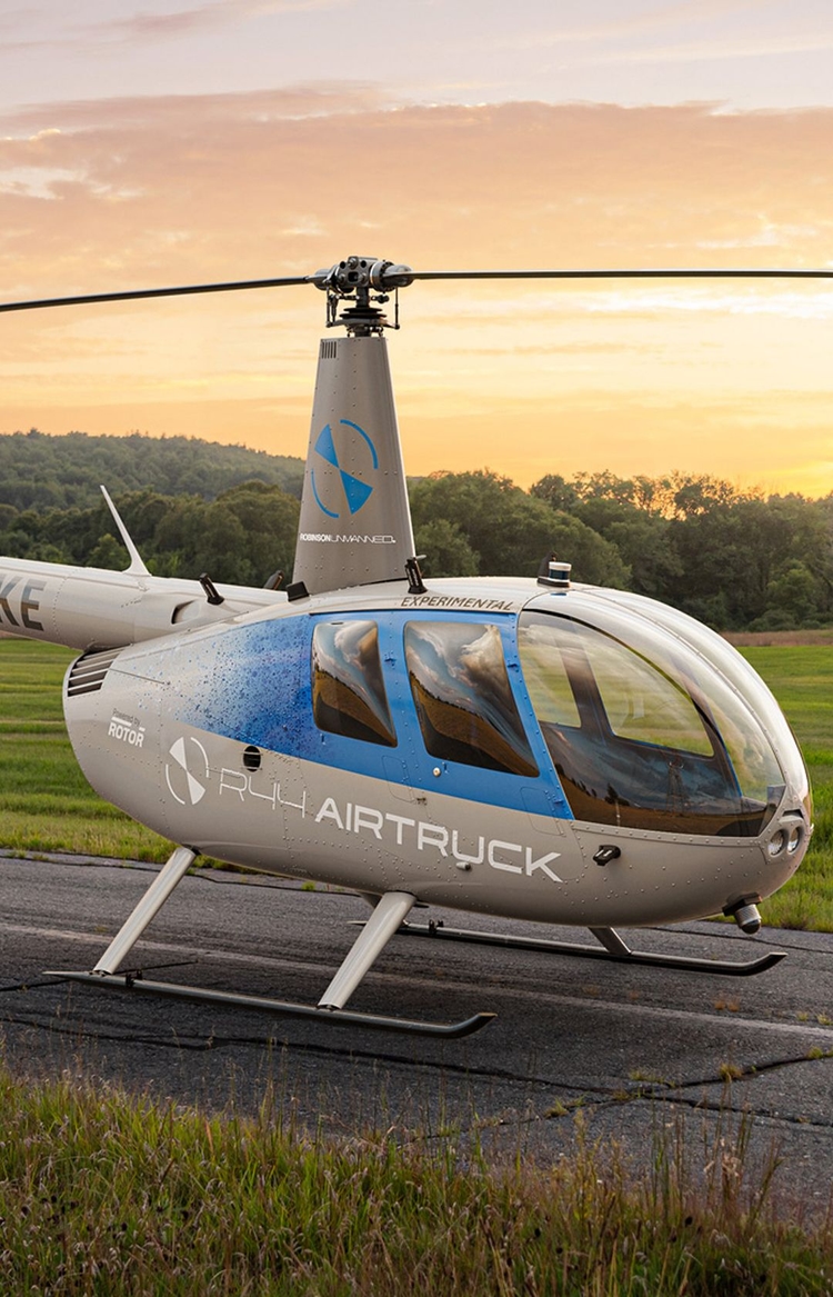 Safe, Efficient, Autonomous Heavy Lift: Built on the proven R44 helicopter, which is the world's most produced helicopter and boasts the largest active fleet in the world, the R44 AIRTRUCK is adapted for remotely- or optionally piloted operation, AIRTRUCK brings established reliability, maintenance practices, and global support infrastructure into unmanned logistics, cargo transport, and resupply operations.